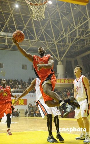 2月6日,2008—2009賽季CBA聯(lián)賽常規(guī)賽第32輪在山東臨沂的一場比賽中,山東黃金隊主場106:103戰(zhàn)勝山西中宇隊。中新社發(fā) 張侃 攝