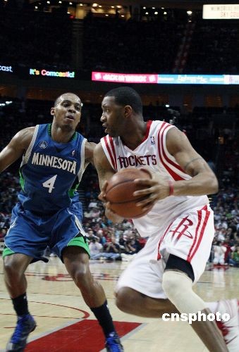 當(dāng)?shù)貢r間2月7日晚,休斯敦火箭在主場豐田中心迎戰(zhàn)西北賽區(qū)倒數(shù)第二的森林狼隊。結(jié)果火箭在上半場一度落后兩位數(shù),但憑借姚明和阿爾斯通等人在下半場的出色發(fā)揮,火箭最終以107-90擊敗森林狼避免了尷尬的連敗。姚明全場18次投籃12次命中,得到火箭最高的30分6個籃板5次蓋帽。中新社發(fā) 歐文 攝