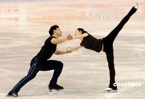 當?shù)貢r間三月二十三日下午,中國雙人滑選手張丹/張昊在洛杉磯進行賽前訓練。二00九年世界花樣滑冰錦標賽二十四日將在洛杉磯開幕。中國名將、都靈冬奧會亞軍張丹/張昊和世錦賽冠軍龐清/佟健將向雙人滑金牌發(fā)起沖擊。中新社發(fā) 張煒 攝