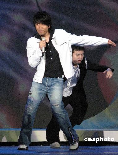春節(jié)即將來臨,北京朝陽政法界2008《魅力朝陽 平安奧運》大型春節(jié)慰問演出舉行。演出集演唱、小品、樂器演奏、雜技等綜藝性節(jié)目于一體,演員陣容強大,既有像羽泉、黃圣依、許茹蕓、沙寶亮、韓紅這樣的國內演藝界知名藝人,又有警員自編自演的歌曲、小品。沙寶亮為北京警員高歌。中新社發(fā) 任海霞 攝