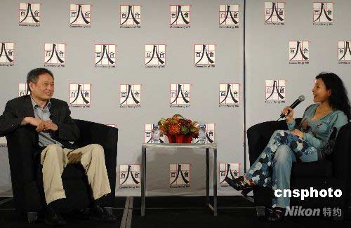 美國華裔精英組織“百人會(huì)”第十七屆年會(huì)四月十八日繼續(xù)在貝弗利山莊希爾頓酒店舉行。當(dāng)天最受矚目的單元是好萊塢著名華裔影星陳沖以主持人的身份與著名華裔導(dǎo)演李安對(duì)話,李安向現(xiàn)場(chǎng)四百多位華裔精英和社會(huì)名流介紹了自己從影的心路歷程。中新社發(fā) 張煒 攝