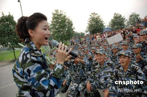 宋祖英用歌聲慰問抗震救災(zāi)的海軍陸戰(zhàn)隊(duì)員