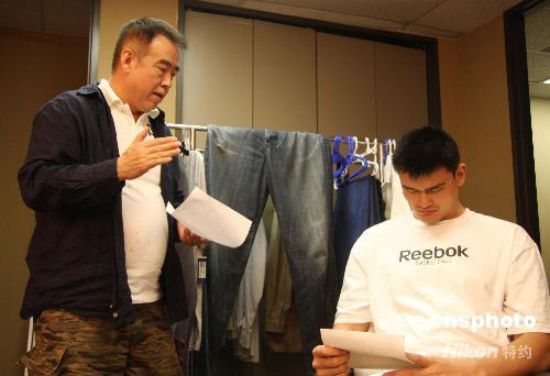 由陳凱歌執(zhí)導,姚明擔綱主角的抗震救災公益宣傳片日前在美國休斯敦開機,圖為導演陳凱歌為姚明“說戲”。據(jù)介紹,該公益宣傳片,是《2008分之1》公益短片行動的特別巨獻,旨在宣揚中華民族不屈不撓,在災難面前頑強奮斗的偉大精神,預計7月初在SMG旗下包括東方衛(wèi)視在內的各大頻道以及中國內地其它各省市級電視臺播出。中新社發(fā) 王鵑 攝