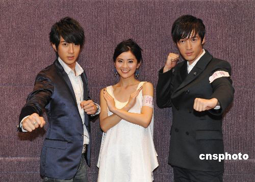 10月9日,馬楚成最新功夫愛情巨制《劍蝶》上映在即,主演吳尊、阿Sa、胡歌以及武術(shù)指導(dǎo)程小東專程趕到北京,與導(dǎo)演馬楚成一同接受各大媒體專訪。初次亮相電影銀幕的吳尊與阿Sa首次攜手,馬楚成對他們的表現(xiàn)贊不絕口,更是給出了“前途無限”的評價(jià)。而《劍蝶》對胡歌也有著特殊的意義,這是他車禍?zhǔn)軅笫状纬鲅莸淖髌贰?jù)了解,《劍蝶》將于10月16日在全國上映。 中新社發(fā) 李學(xué)仕 攝