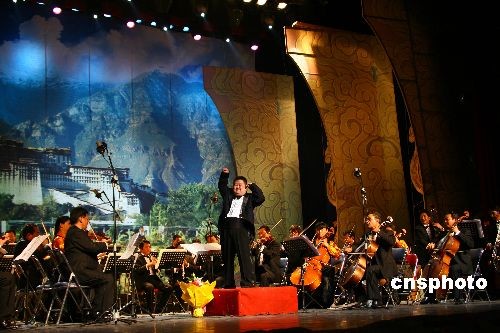 11月13日晚,著名智障音樂指揮家舟舟在拉薩民族文化藝術(shù)宮憑著對音樂的天賦感悟和高超的指揮藝術(shù)將觀眾帶進神圣的音樂殿堂。身著黑色燕尾服的舟舟激情四溢的揮舞著指揮棒,劃出優(yōu)美的弧線、打著鮮明的拍點,再輔以豐富的表情,指揮西藏愛樂樂團的樂手們將《卡門序曲》、《拉德斯基進行曲》、《匈牙利舞曲》等世界經(jīng)典名曲演繹出令人心醉神迷的優(yōu)美旋律。中新社發(fā) 那勇順 攝
