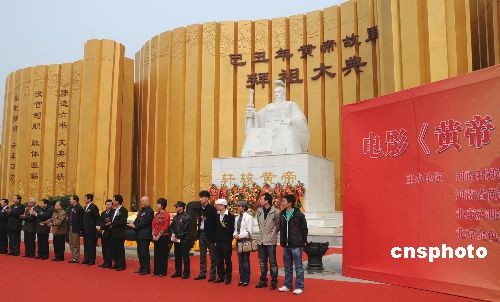 三月二十八日上午,大型史詩(shī)電影《黃帝》在河南新鄭黃帝故里舉行啟動(dòng)儀式。該片將以黃帝統(tǒng)一萬(wàn)國(guó),開(kāi)創(chuàng)基業(yè),創(chuàng)制律歷,發(fā)明文字,植桑養(yǎng)蠶,研究醫(yī)學(xué)等生平、生活和思想為藍(lán)本,向世人講述黃帝與自然、社會(huì)、人的交往、斗爭(zhēng),進(jìn)而和諧相處的歷程,講述一個(gè)民族英雄的成長(zhǎng)故事,一個(gè)中華始祖不屈不撓與命運(yùn)抗?fàn)幍臍v史。中新社發(fā) 史寶銀 攝