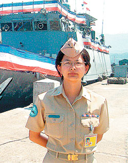 中新網(wǎng)7月12日電 據(jù)“中央社”報道,臺海軍2010年6月產(chǎn)生第二位女性艦長。1976年出生的林美菁因資歷完整、績效優(yōu)異,獲派任為“鄱江號”少校艦長。對于將在海上獨當(dāng)一面,她表示有十足信心勝任。