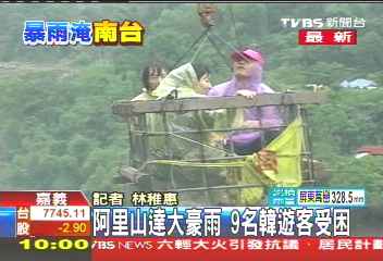 今天一早,消防隊用流籠接駁的方式,將他們接送出來,因為流籠的高度較高,一度讓這些韓國游客飽受驚嚇,最后平安脫困;但由于大雨意外,已經(jīng)讓他們原本今天返回韓國行程延誤。
