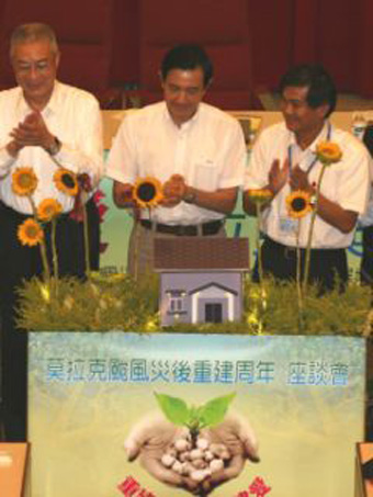 馬英九以及吳敦義都參加了“莫拉克災(zāi)后重建周年座談會”。馬英九說,“八八風(fēng)災(zāi)”所帶來的巨大雨量與造成對土地的侵害更勝已往。經(jīng)過這次的學(xué)習(xí),對于往后的災(zāi)變可以預(yù)先建立相關(guān)制度,像是鄰鄉(xiāng)村系統(tǒng)、警政系統(tǒng)、消防系統(tǒng)、再來是“水利署”、“經(jīng)濟部”與“農(nóng)委會”等七個或八個系統(tǒng),再加上防災(zāi)辦公室,對于緊接的8、9月份臺風(fēng)季節(jié),采取“料敵從寬、御敵從嚴”的態(tài)度,相信可以防止災(zāi)害再度發(fā)生。