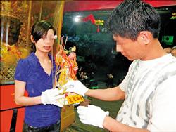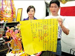 中新網(wǎng)8月11日電 你相信人神戀嗎?在嘉義有一名情路坎坷的男子,無意間幫朋友酬神,他說后來感應(yīng)到神明闖入夢中,與其相戀,還說要以身相許,他果真由父母作主,把神明給娶回家供奉。這場另類婚禮還特地找來年輕女子代替女主角,雙方象征性互戴戒指完婚。