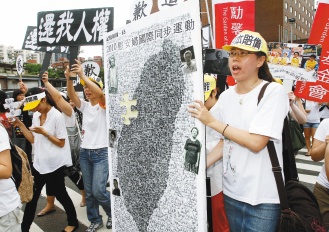 中新網(wǎng)8月12日電 “日本政府,道歉賠償!”日本首相菅直人前天向韓國道歉“曾經(jīng)殖民支配”,臺灣婦女救援基金會、臺灣戰(zhàn)俘營紀念協(xié)會等民間團體,11日赴“日本交流協(xié)會”前抗議并要求完成“歷史記憶拼圖”,不過交流協(xié)會代表僅接下抗議信,不愿完成拼圖。