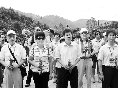 71年后的2010年8月17日,參加“情系八桂——兩岸文化聯誼行”活動的兩岸文化、教育界人士,手持黃菊花走近昆侖關戰(zhàn)役舊址。一向健談活躍的臺灣沈春池文教基金會秘書長陳春霖先生此時反復自語的只有4個字:肅然起敬。通往陣亡將士墓的臺階高達331階,但臺灣交流團中六七十歲的老先生們都步行到墓前,70多歲的臺前“陸委會”主委張京育先生說:“家父也是抗戰(zhàn)烽火中的一名中國軍人,我這是第二次到廣西,第一次就是抗戰(zhàn)時隨父母來的。我們的腳下是前輩先烈為國捐軀的土地,他們永遠是我們中華民族之光!