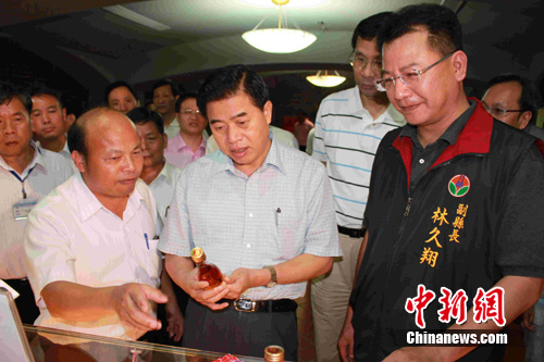 中新社苗栗8月19日電 (記者 張傳熙)正在臺(tái)灣山區(qū)縣苗栗訪問(wèn)的廣東省省長(zhǎng)黃華華,當(dāng)看到苗栗出產(chǎn)的用草莓做成的酒類商品、糖果、糕點(diǎn)琳瑯滿目、擺滿當(dāng)?shù)靥禺a(chǎn)商場(chǎng)貨架時(shí)大為贊嘆,連聲說(shuō):“苗栗農(nóng)產(chǎn)品開(kāi)發(fā)了不得!”他希望廣東與苗栗加強(qiáng)合作,推動(dòng)水果業(yè)的發(fā)展,推動(dòng)兩地觀光農(nóng)業(yè)的交流。