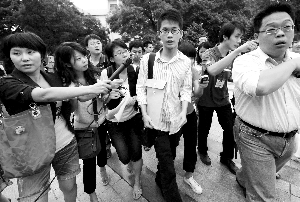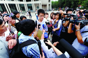 李戡戴著黑邊眼鏡,身穿藍(lán)色豎條的白底襯衫、黑色褲子,不茍言笑。他像一塊磁石一樣吸引著攝像鏡頭和錄音筆,從報(bào)到、辦理飯卡到宿舍,再到校外,李戡一直在不停地回答著記者的問題。