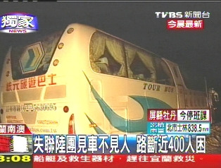 報(bào)道說,游覽車玻璃上還貼著歡迎貴賓的簡體字紙條,但車上的司機(jī)和旅客卻不知去向。工程人員表示:“只有車,受困在坍方的地方!庇浾邌枺骸叭擞性谏厦鎲幔俊惫こ倘藛T回答:“我不曉得,我沒有上去耶!