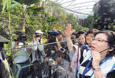 陳文茜主動(dòng)向花博報(bào)名導(dǎo)覽志工,10日現(xiàn)身未來(lái)館為民眾解說(shuō)。她說(shuō),每天電視上都看到夢(mèng)想館參觀民眾大排長(zhǎng)龍,但她認(rèn)為其它展館也別具特色,例如最能代表臺(tái)灣花卉精神的,就是未來(lái)館。