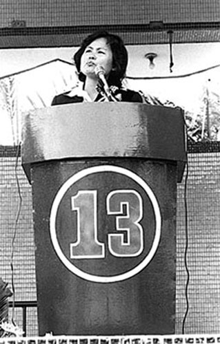 如果沒有家族勢力作后盾,悲情牌就成了女性打入政壇的必勝法寶。1979年“美麗島”事件發(fā)生后,“代夫出征”風行一時,當時被國民黨當局逮捕且判刑的張俊宏、姚嘉文、林義雄等人,他們的妻子均在各種選舉中高票當選。1984年陳水扁因“蓬萊島案”入獄后,妻子吳淑珍也高票當選“立委”。