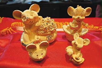 據(jù)臺灣《聯(lián)合報》報道,當?shù)匾晃唤痫棙I(yè)者表示,明年農(nóng)歷傳統(tǒng)12生肖又重新由鼠年開始,金飾又深獲島內(nèi)民眾喜愛,因此今年金飾設(shè)計走俏皮及喜氣風(fēng)格,將不甚討好的老鼠變成金光閃閃、既生動又可愛的卡通版造型,主要有卡通鼠、家鼠、錢鼠及袋鼠等造型,花樣多變。