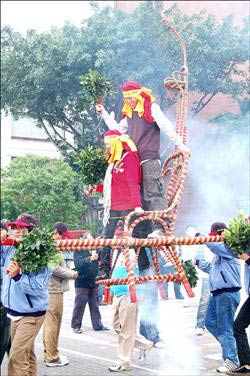 中新網(wǎng)2月15日電 昨天是情人節(jié),伍重瀚、蔡悅晨這對臺灣情侶選擇站上情人轎扮演寒單爺(臺東地區(qū)漢人的民間信仰中相當獨特的一支)接受炮轟,成為史上首對情侶檔寒單爺。