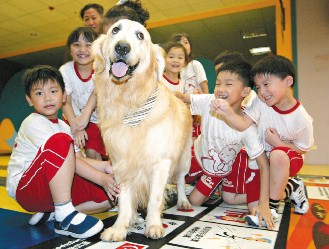 據(jù)臺灣媒體報道,“小胖”是一只3歲的黃金獵犬,初到幼兒園“兼課”,隨即贏得小朋友的喜愛。幼兒的狗“老師”是該幼兒園園長所催生。最近,她首創(chuàng)狗課程,雖然課程安排只有半小時,但她為除去家長的疑慮,特別與狗學(xué)校接觸,遴選具穩(wěn)定、服從性高的“小胖”到!凹嬲n”。