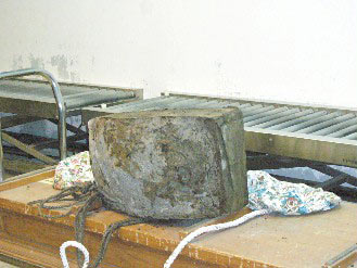 警方昨天帶著吳文宏到基隆市原租屋處尋找棄尸,在后方水溝發(fā)現一個長方形水泥塊,長六十厘米、寬四十厘米、高二十厘米,重約六十公斤。運回殯儀館后,用電鉆小心鉆了約1個小時終于切開,果然發(fā)現女童尸體,全案宣告?zhèn)善啤?/p>