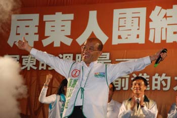 蘇貞昌20日晚在故鄉(xiāng)屏東市造勢(shì),請(qǐng)故鄉(xiāng)人給他溫暖護(hù)送他進(jìn)“總統(tǒng)府”,也呼吁屏東人不要被國(guó)民黨的奧步騙走選票。 “中央社”圖