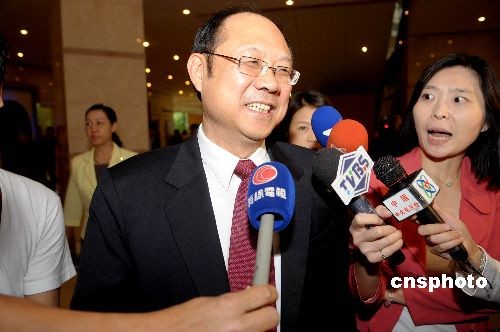 圖為海協(xié)會常務副會長鄭立中抵達深圳后即被媒體記者追訪。