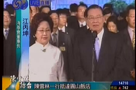 江丙坤也特別向陳會(huì)長提出來,這里有很多熱情的好客的臺(tái)灣的民眾,他們的心聲,相信他會(huì)聽得到。他并再度地表示歡迎,也希望這一次的協(xié)商順利成功。