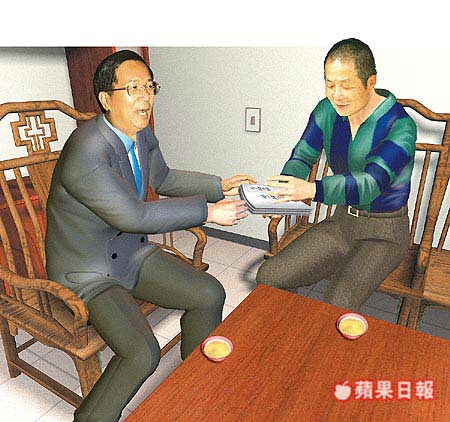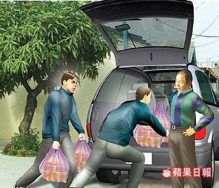 扁囑咐隨扈人員將五大包,面額共2500萬(wàn)元的紙錢,送到休旅車上。