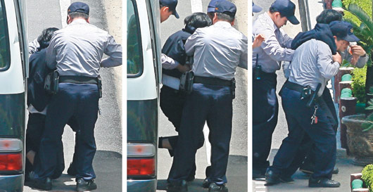 陳水扁7日返回看守所時(shí)差點(diǎn)跌倒,在三名法警的攙扶下進(jìn)入戒護(hù)中心。
