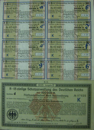 臺(tái)北市的蘇文朗,當(dāng)年祖父是士林紙廠的干部,他五歲時(shí),曾看過祖父拿出兩張鈔票大小的“彩色紙片”用來包煙草。當(dāng)時(shí)他好奇地纏著祖父問,這些“圖畫紙”是哪里來的。祖父抽了一口煙,緩緩地說:“這不是圖畫紙,是外國錢!痹瓉碜娓府(dāng)年奉命要以馬克債券作為紙廠員工工資,但心軟的祖父預(yù)感這些“外國錢”兌換無門,因此家境富裕的他,干脆自掏腰包發(fā)薪水,而這些馬克債券就成了祖父嘴邊的彩色煙卷。
