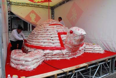 泉州天后宮文物保護管理處副主任何振良說,繼去年澎湖“乞龜”祈福的民俗表演首次在泉州天后宮展現(xiàn)后,今年元宵期間澎湖“乞龜”將再次參加泉州天后宮的鬧元宵活動。去年的那只“米龜”,由1200袋平安米做成,重達6000公斤,今年的這只“米龜”更大,將由2000袋平安米制作而成,重達1萬公斤。正月初十左右,來自澎湖縣的“米龜”制作師傅將到達泉州,開始制作“米龜”,正月十三左右制作完成。2月22日(正月十六)上午,第七屆泉州“海絲”文化節(jié)組委會將在泉州天后宮廣場舉行“泉州·澎湖乞龜民俗文化活動”揭彩儀式。
