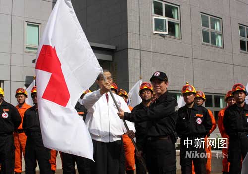 搜救隊(duì)今天上午八點(diǎn)三十分由市長(zhǎng)郝龍斌及臺(tái)灣紅十字組織會(huì)長(zhǎng)陳長(zhǎng)文授旗,下午啟程。至于搜救隊(duì)將至哪一個(gè)地方救援,要等到了成都后,由當(dāng)?shù)氐木仍鞴軉挝环峙,搜救?duì)準(zhǔn)備約七天份的干糧及飲水。