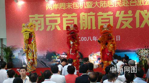 海協(xié)會會長陳云林、國臺辦常務副主任鄭立中、江蘇省長羅志軍、中共江蘇省委副書記王國生、中共南京市委書記朱善璐以及有關(guān)部門官員,江蘇省市高層、民航、旅游、口岸等方面的負責人出席儀式,加上三十名乘坐首次航班的乘客代表、二十名臺商代表、東航機組人員、旅游界人士和其它方面代表近三百人見證兩岸歷史性時刻。