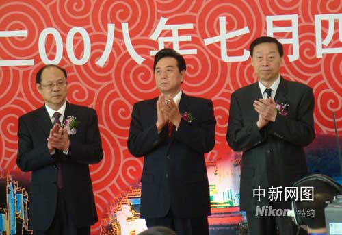圖為海協(xié)會會長陳云林(中)、國臺辦常務副主任鄭立中(左)、江蘇省長羅志軍出席儀式。