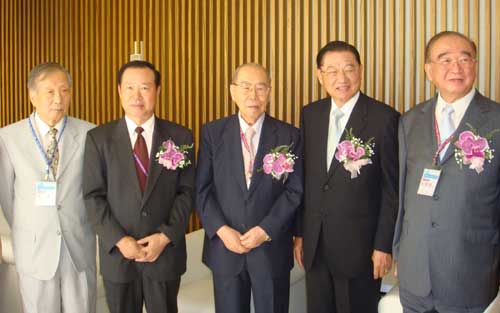 ;鶗麻L江丙坤(右二)與海協(xié)會副會長王在希(左二)七日出席第十三屆中國現(xiàn)代化學(xué)術(shù)研討會。中為“促進中國現(xiàn)代化學(xué)術(shù)基金會”董事長梅可望。 (“中央社”圖)