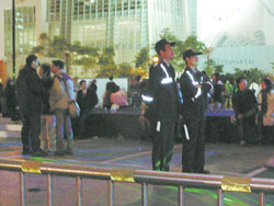 現(xiàn)場(chǎng)氣氛尷尬,因舞臺(tái)前主辦單位還安排了兩位真警察站崗,兩位警察見(jiàn)狀,一動(dòng)也不動(dòng)。記者問(wèn):“你看了覺(jué)得如何?”警察氣憤地說(shuō):“有很多人來(lái)問(wèn)我,但那些一看就知道是假的!睋(jù)悉,最后該活動(dòng)仍選出比基尼冠軍,巧的是,得獎(jiǎng)的女子又是脫掉比基尼用手遮住重點(diǎn)的舞者。