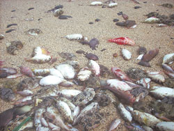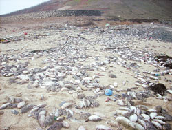 中新網(wǎng)2月18日電 據(jù)臺(tái)灣中國(guó)時(shí)報(bào)報(bào)道,四面環(huán)海的澎湖望安離島,連日來四周海灘布滿了魚尸,望安“國(guó)中”校長(zhǎng)洪嬡慧表示“太可怕了,三、四百公尺長(zhǎng)的海灘全是魚尸!彼f,望安有七個(gè)海灘,只走了兩處海灘,情況都一樣嚴(yán)重,希望當(dāng)局相關(guān)單位趕緊處理,否則會(huì)對(duì)環(huán)境帶來災(zāi)難。