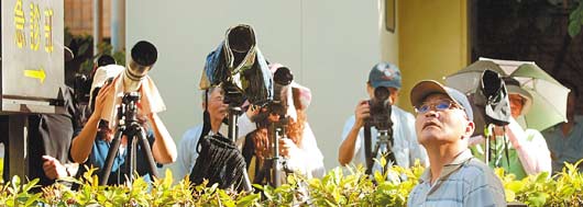 臺北縣攝影學會人員說,如此盛況已持續(xù)一周了,還有人凌晨三、四點就來報到,想捕捉成鳥喂食幼鳥的畫面。