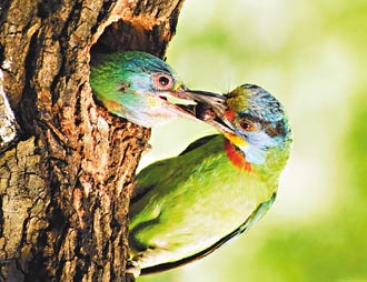 中新網(wǎng)8月6日電 臺大醫(yī)院急診室門口最近經(jīng)常聚集一堆人。烈日當頭,他們大太陽底下一站數(shù)小時,每個都手持架著宛如“大炮”的長攝影鏡頭。到底在拍什么?原來是醫(yī)院旁一棵樟樹上有個小鳥窩,里頭住著五彩繽紛的“五色鳥”一家。