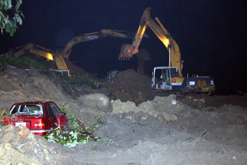 事發(fā)后,現(xiàn)場(chǎng)共動(dòng)員二百名相關(guān)單位人員及五部重機(jī)械搶救,至當(dāng)晚九時(shí)搜出四輛汽車(包括一輛廂型車、兩輛小客車、一輛小貨車)及一部摩托車。
