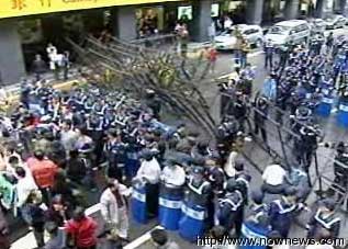 報(bào)道說,陳水扁今天上午應(yīng)訊前,包括前“總統(tǒng)府秘書長”陳唐山、“立委”高志鵬、民進(jìn)黨臺北市黨部主委黃慶林等人,均陪同在陳水扁身旁,一同步行前往特偵組,而大批支持民眾也包圍在陳水扁身旁,相挺的氣勢讓警方如臨大敵,立即動員上千名警力和布置拒馬維安。