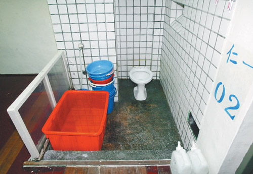 看守所房舍中浴室兼廁所,馬桶沒有蓋,陳水扁只能蹲著洗澡。圖片來源:臺灣《聯(lián)合報》