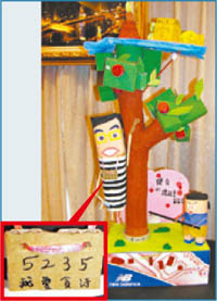 中新網(wǎng)1月6日電 高雄應(yīng)用科技大學(xué)舉辦創(chuàng)意環(huán)保童話公仔競(jìng)賽,原訴求童話可愛(ài)風(fēng)格,但一組嘲諷陳水扁弊案的《杰克與櫻桃豆》創(chuàng)作,讓阿扁穿上編號(hào)“5235(諧音‘我愛(ài)貪污’”囚衣,意外拿下銅牌。