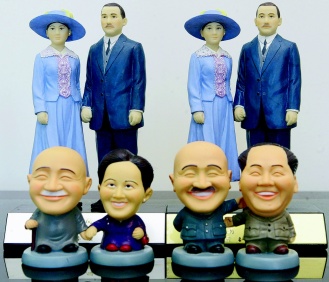 國(guó)民黨黨史館主任邵銘煌說(shuō),黨史館與廠商開(kāi)發(fā)訂制兩岸政治人物Q版公仔,馬英九、蕭萬(wàn)長(zhǎng),蔣介石、蔣經(jīng)國(guó)等,巧妙地把蔣介石與毛澤東搭配為“握手言歡”的主題,兩公仔互搭肩的手勢(shì)且笑開(kāi)懷,一笑抿恩仇。
