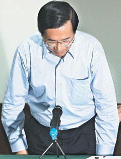 陳水扁卸任后首次舉行記者會,坦承短報(bào)選舉剩余款,這些錢由其妻吳淑珍在他不知情下匯往島外賬戶,他照著文字稿念完,隨即鞠躬離開,留下一堆謎團(tuán)。臺灣《聯(lián)合報(bào)》圖