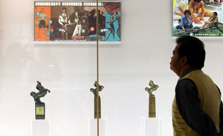 臺(tái)北金馬影展“向大師致敬”文物展二十五日開(kāi)幕,展出電影大師胡金銓、李翰祥、楊德昌等人生前手稿、劇本、劇照等文物!爸醒肷纭眻D 鄭杰文 攝