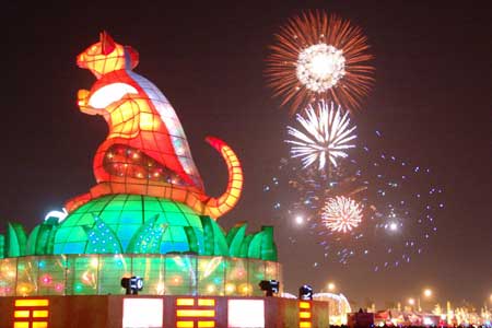 2008臺灣燈會二日晚間在臺南縣閉幕,主燈“禮鼠獻(xiàn)瑞”在最后一次展演后熄燈。“中央社”圖 楊思瑞 攝