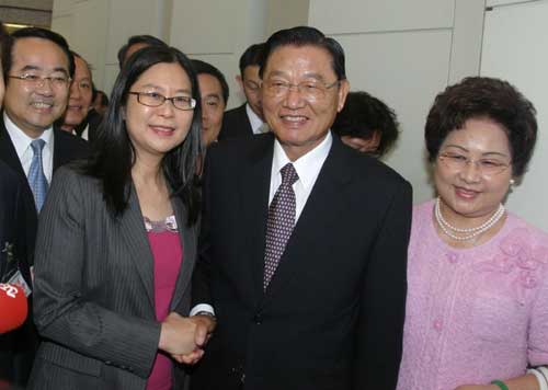 圖:;鶗麻L江丙坤率團(tuán)啟程赴北京