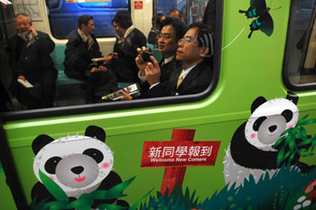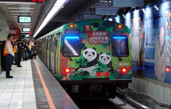 中新網(wǎng)12月25日電 據(jù)“中央社”報道,臺北市捷運南港線南港車站25日通車啟用,首班啟用的是臺北市動物園“熊貓彩繪列車”。